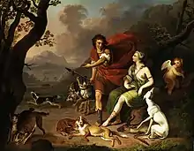 Le conflit entre Diane et l'Amour sera abordé de nouveaux par Simon-Joseph Pellegrin dans son livret pour Hippolyte & Aricie de Jean-Philippe Rameau. Lucien de Samosate évoque cette opposition dans ses Dialogues des Dieux (IIe siècle EC) lors d'une discussion entre Vénus et Cupidon. Dans ce dialogue, l’Amour évoque sa crainte contre Minerve, dotée d'un « regard terrible, & est effroyable avec son casque & bouclier »[52]. Ironiquement, Minerve dans le prologue d'Orion est favorable à Cupidon. Diane dans le dialogue est évoquée comme étant préoccupée par l’amour de la chasse, qui se passe dans les forêts où Cupidon peine à suivre la déesse. Cependant, Diane manifeste un amour jaloux violemment dans Orion, justifié par les auteurs en citant Noël le Comte. En effet, le grammairien Dioclès (aussi connu sous le nom de « Tyrannion le Jeune ») rapporte que Diane aurait aimé épouser Orion[53].