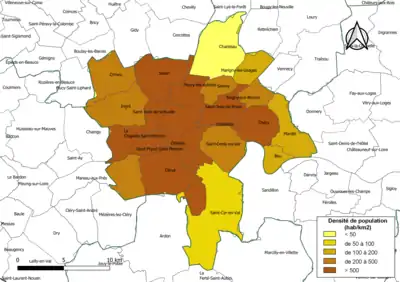 | La Chapelle-Saint-Mesmin | 45075 | Chapellois | 8,96 | 10 218 (2021) | 1 140 |