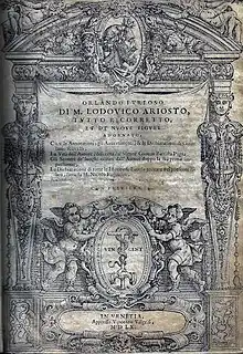 - Orlando fvrioso di M. Lodovico Ariosto ; nuovamente adornato di figure de rame a Girolamo Porro, padovano, In Venetia : Appresso Francesco de Franceschi Senese e compagni, 1584
