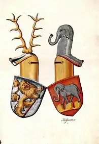 Un cimier (ou meuble) en forme d'ailes, souvent décorées.
