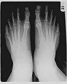 Si le gros orteil et le deuxième orteil ont la même longueur (mesurée de l'articulation MPT à la pointe, y compris uniquement les phalanges), le deuxième orteil fera saillie plus loin que le gros orteil, comme indiqué sur la photo. Si le deuxième orteil est plus court que le gros orteil, le gros orteil peut toujours dépasser le plus éloigné, ou il peut y avoir peu de différence, comme indiqué sur la radiographie.