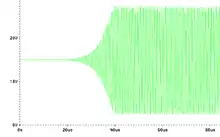 En réalité, toutefois, l'amplitude des oscillations est évidemment limitée par la puissance de l'alimentation du circuit.