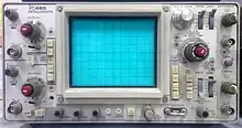 Un oscilloscope, ou oscillographe[1], est un instrument de mesure destiné à visualiser un signal électrique, le plus souvent variable au cours du temps. Il permet d'observer les variations temporelles, soit de tensions électriques, soit de diverses autres grandeurs physiques préalablement transformées en tension au moyen de convertisseurs adaptés ou de capteurs. La courbe de rendu d'un oscilloscope est appelée oscillogramme.