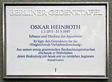 Assistant du directeur du Zoo de Berlin, Oskar Heinroth fut chargé de concevoir l'Aquarium du Zoo de Berlin, qui ouvrit en 1913. Oskar Heinroth devint le directeur de l'aquarium et y travailla jusqu'à la destruction de l'aquarium en 1943 durant la Seconde Guerre mondiale.