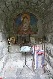 Haut de 8 m, le monument est constitué de blocs de granite ; il prend la forme d'une chapelle avec un clocher surmonté d'une croix. À l'intérieur se trouve une fresque-icône représentant la Mère de Dieu à l'Enfant peinte par Živorad Nastasijević[3]. Le mémorial a été entouré d'une clôture en 1936. Sur les piliers du portail d'entrée se trouvent deux plaques commémoratives avec des vers de Vojislav Ilić Mlađi et, entre les piliers, au-dessus de la porte, on peut lire l'inscription : « Aux héros morts pour la patrie »[3].