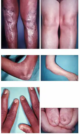 - L'atteinte de l'ongle est la plus constante : ongle absent, peu développé ou dystrophique.