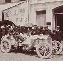 (nb: participation à la course automobile Paris-Madrid en 1903, sur Mercedes)