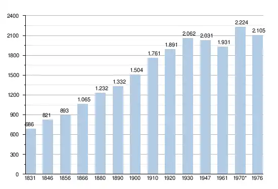 - Sources : INS, Rem. : 1831 jusqu'en 1970 = recensements, 1976 = nombre d'habitants au 31 décembre.