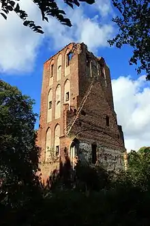 Il reste aujourd’hui les ruines du château et la tour (datant de 1648) de l’église construite au XIVe siècle, l’église elle-même ayant été utilisée comme carrière de pierres et de briques par les habitants. C’est ici que fut enterré vers 1380 le commandeur de Brandenburg, Günther von Hohenstein.