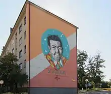 Mur de la maison peinte en l'honneur de Uladzimir Karatkevich à Rahatchow