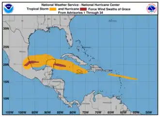 | Zones touchées | Antilles, péninsule du Yucatán, Mexique central | |||||||