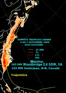 - (fr) Centre canadien de prévision d'ouragan, « Bulletin sur la tempête tropicale Hanna 4 septembre », Environnement Canada, 4 septembre 2008 à 12 tu (consulté le )