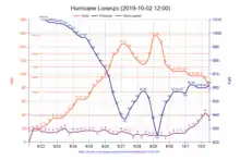 L’ouragan Lorenzo (également connu sous le nom de Tempête Lorenzo pour l'Irlande et le Royaume-Uni, alors qu'il était extra-tropical) est le treizième système tropical, le cinquième ouragan et le troisième ouragan majeur de la saison cyclonique 2019 dans l'océan Atlantique nord. Ce puissant cyclone de catégorie 5 sur l'échelle de Saffir-Simpson est né au large de la côte africaine et a atteint son apex le 29 septembre à 2 h 10 UTC à mi-chemin entre les Petites Antilles et le Cap-Vert, remontant vers le nord. Il a commencé à perdre de son intensité peu de temps par la suite et est devenu un puissant cyclone extra-tropical après être passé sur l'ouest des Açores en direction des îles Britanniques le 2 octobre. Encore une importante tempête en arrivant près de la côte irlandaise le 3 octobre, il a perdu rapidement son intensité durant la nuit suivante en traversant l'île. Le 4 octobre, le système est devenu un faible système étendant un creux barométrique vers l'Europe centrale et se dissipa par la suite.