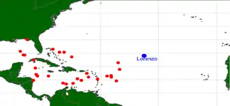 - philklotzbach, « Hurricane Lorenzo has now generated the most Accumulated Cyclone Energy at or east of 45°W by any Atlantic hurricane on record. », sur Twitter, (consulté le )