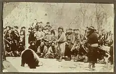 Le peuple Ainu adore l'ours brun, mange sa chair et boit son sang dans le cadre d'une fête religieuse connue sous le nom d'Iyomante[réf. nécessaire].