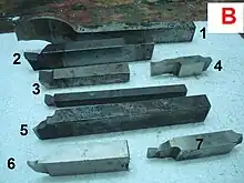 Cet outil permet d'usiner une rainure de grande largeur (B3-4), les petites largeurs sont utilisées pour le rainurage destiné à recevoir un joint, un circlips, etc. (B6-7).