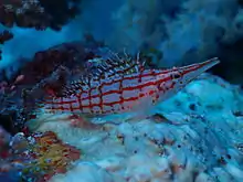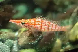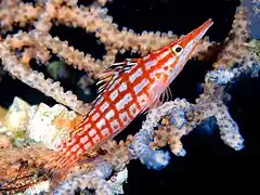 Oxycirrhites · Bécasse à carreaux, Épervier à long nez, Poisson-faucon à long nez