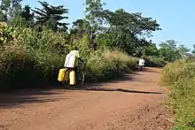 Cyclistes sur une route du district d'Oyam (2020).