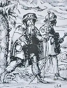 La besace et le bourdon (en ancien français bordon) constituent, dès le Haut Moyen Âge, les deux attributs caractéristiques du pèlerin, permettant de le reconnaître en tant que tel.
