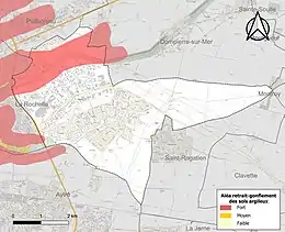 Le retrait-gonflement des sols argileux est susceptible d'engendrer des dommages importants aux bâtiments en cas d’alternance de périodes de sécheresse et de pluie. 14,4 % de la superficie communale est en aléa moyen ou fort (54,2 % au niveau départemental et 48,5 % au niveau national). Sur les 3 158 bâtiments dénombrés sur la commune en 2019, 695 sont en aléa moyen ou fort, soit 22 %, à comparer aux 57 % au niveau départemental et 54 % au niveau national. Une cartographie de l'exposition du territoire national au retrait gonflement des sols argileux est disponible sur le site du BRGM[16],[Carte 2].