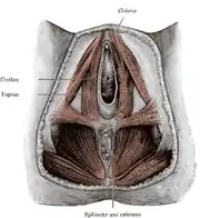 Le périnée (du latin : perineum, autour des voies évacuatrices) est la paroi inférieure du pelvis, fermant le détroit inférieur, et diffère entre l'homme et la femme.