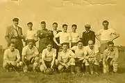 (*) on reconnaitra sur la photo de g. à d., au 1er rang : X, Paul BELIN, X, Jules DELEMER, ? LEMAIRE (de Fretin), Charles PLANQUE, Richard SION, au 2e rang : Édouard DUPONT, X, Maurice SION, Rémi SION, X, Francis DEFRETIN, Marcel DEMOUVEAUX, X.