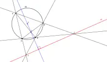 Soit enfin A le point tel que P,A,M,N forment une division harmonique, c'est-à-dire tel que le birapport (PA,MN) vaut -1. On montre que, lorsque M varie, le lieu de A est une droite ou un segment de droite.