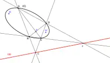 - Si le pôle est sur la conique alors sa polaire est la tangente à la conique en ce point.