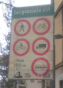 Bien que communément indiquée par des panneaux et des informations routières avec le toponyme de Tangenziale Est[1] (périphérique Est), l'artère n'a jamais officiellement pris ce nom car c'est l'union logique de plusieurs tronçons de route, avec des toponymes et des temps de construction différents.
