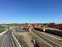 Plusieurs lignes ferroviaires et gares jouxtent et traversent le PED :