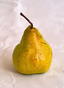 Le fruit de Packham's Triumph est assez gros, cydoniforme ventru, irrégulier, bosselé en son pourtour, mamelonné à la base.
