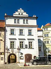 Le palais a été créé en joignant deux maisons Renaissance plus anciennes, dans lesquelles les fondations sont des vestiges visibles d'un édifice gothique, apparemment le parvis de l'ancienne porte Újezdská.