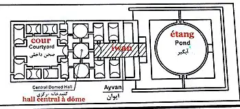 Le palais comprend un iwan, entrée actuelle du palais, plusieurs salles voûtées et trois salles sous coupole. On y trouve le plus ancien exemple de coupole sur trompe encore debout, une technique qui permet le passage du plan carré au sol au plan circulaire de la coupole. Les murs sont construits en moellons maçonnés au mortier de gypse, parfois recouverts d'enduit[1].