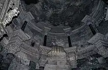 La chambre du temple est couverte par une voûte en berceau, faite de trois rangées de dalles soigneusement ajustées, et sculptées pour former un plafond à caissons : le décor sculpté de têtes humaines et de rosettes en est souvent comparé à celui du temple de Vénus à Rome, construit sous le règne d'Hadrien près du Forum Romanum. Immédiatement sous la voûte court une corniche corinthienne dont les modillons sont décorés par des éclairs.