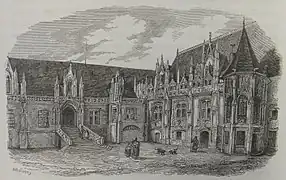 Formant une disparate désagréable avec l’ensemble du monument, ces édifices de style moderne, sont finalement remplacés de 1833 à 1836[2] par des constructions spacieuses, tout à fait en rapport avec le style des deux autres ailes médiévales[3]. Complétant ces travaux, le pavillon situé dans l'angle nord-ouest de la cour et la porte aux Cerfs (sur la rue aux Juifs) est démoli en 1834[2].