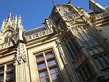Marquant une évolution stylistique, le corps central de l'édifice, correspondant à l'ancien Palais Royal de 1508, développe déjà un style de transition entre l'art gothique et la Première Renaissance, caractérisant ce que l'on appelle le style Louis XII[17]. Son architecture est à rapprocher de celle de l'hôtel de Bourgtheroulde et du bureau des Finances contemporains.