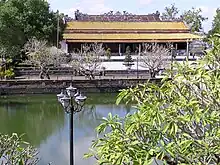 En 1833, le Roi Minh Mang déplaça ce palais à l’endroit actuel, sur un terrain surélevé de 2,3 m[2].