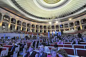![]() Congrès du Parti populaire européen, réuni en 2009 dans la salle des congrès du palais de la culture de Varsovie. |