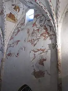 Sur les voûtes sont visibles douze Sibylles. Les Sibylles sont, dans l’Antiquité, des femmes ayant don de prophétie. Elles ont été, par la suite, adoptées par les Pères de l’Église, qui ont vu dans leurs prophéties l’annonce de la venue du Christ. Les artistes leur ont associé, toujours sur les voûtes, les Pères des douze Tribus d’Israël. L’imposant arbre de Jessé - désignant traditionnellement l’arbre généalogique du Christ, à partir de Jessé, père de David – a été peint sur le mur sud de la cathédrale. Sur le mur nord ont été figurés différents épisodes de la vie de saint Jacques le Majeur, notamment l’épisode du transport du corps du saint en barque jusqu’en Galice.