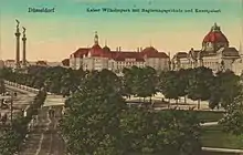 Même après 1902, des expositions importantes ont lieu au Palais des Arts, comme l'Exposition internationale d'art et la Grande exposition d'horticulture (de)[8], en 1906, la grande exposition d'art NRW de Düsseldorf (de) du VzVvK, connue plus tard sous le nom de "La Grande"[9], en 1907 sous le protectorat du prince héritier Frédéric-Guillaume, la troisième exposition nationale allemande d'art[10], en 1910 une exposition du Sonderbund et dans les années 1917 et 1918, la Grande exposition d'art de Berlin. Du 17 au 24 août 1908, Emanuel Lasker et Siegbert Tarrasch jouent les quatre premiers matchs du Championnat du monde d'échecs au Palais des Arts organisé pour la première fois en Allemagne. En 1907/1908, le nouveau musée Hetjens (de) est construit sur l'aile nord du Palais des Arts (Hofgartenufer 3). Peu avant la Première Guerre mondiale, la ville a adopté des extensions pour le palais des expositions. Les plans de Wilhelm Kreis pour les porches ne sont pas mis en œuvre.