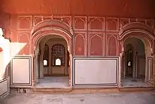 L'intention initiale était de permettre aux dames du harem royal d'observer la vie quotidienne dans la rue en dessous sans être vues, car elles devaient obéir strictement à la pratique du « purdah ». Ces claustras finement sculptées, permettaient également par effet venturi à un air relativement plus frais de circuler à travers l'édifice pendant les étés torrides de cette région.