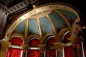 L'aile ouest était consacrée aux espaces de réception qui comprenaient notamment une salle des fêtes, une salle à manger pouvant accueillir des dîners de 350 couverts et une salle de réunion. La liaison entre ces différents espaces se faisait par des galeries de circulation et des escaliers secondaires.
