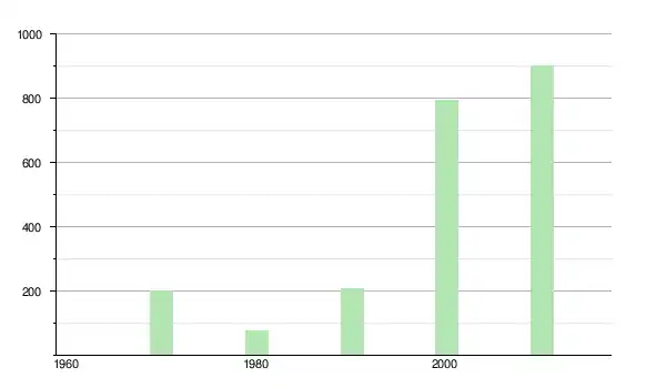 | 1990 | 210 | ▲ +172,73 % | |