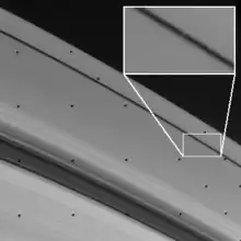 - (en) J. N. Cuzzi, J. D. Scargle, « Wavy edges suggest moonlet in Encke's gap », Astrophysical Journal, vol. 292, , p. 276 (lire en ligne)