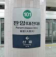 La station établie en souterrain Panam[1] est la station terminus sud-est de la Ligne 1 du métro de Daejeon, elle est située avant la station Sinheung, en direction du terminus nord-ouest Banseok[1],.