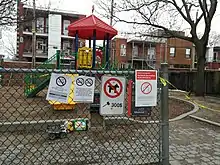 - Radio-Canada/La Presse canadienne, « Montréal ferme les modules et aires de jeu dans ses parcs », sur Le Devoir, (consulté le ).