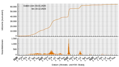 En 2023 il y avait 1 274 nouveaux cas et 7 décès, portant le nombre de cas à 64 477 dont 417 décès.