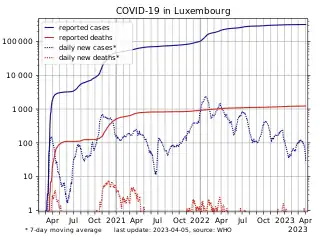 La pandémie de Covid-19 au Luxembourg démarre officiellement le . À la date du , le bilan est de 1 123 morts.