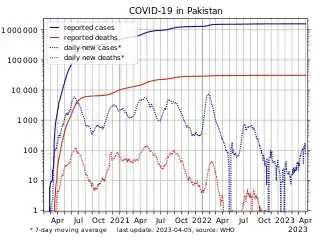 La pandémie de Covid-19 au Pakistan démarre officiellement le . À la date du , le bilan est de 30 626 morts.
