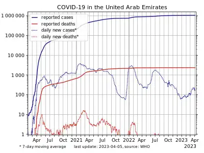 La pandémie de Covid-19 aux Émirats arabes unis démarre officiellement le . À la date du , le bilan est de 2 348 morts.